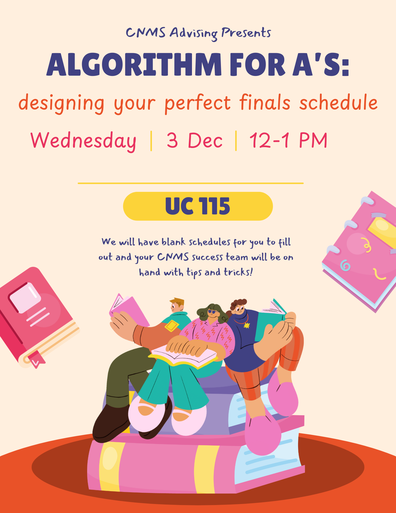 Wednesday, December 3: “Algorithm for A’s”: Designing your Perfect Finals Schedule